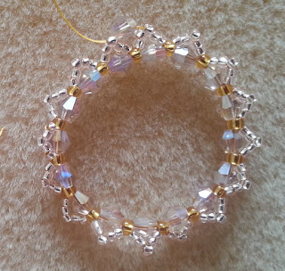 mamy coś w rodzaju obwarzanka, łączymy więc środkowe jego brzegi dodając pomiędzy nie koraliki 11/0 łącząc bicone ze sobą.